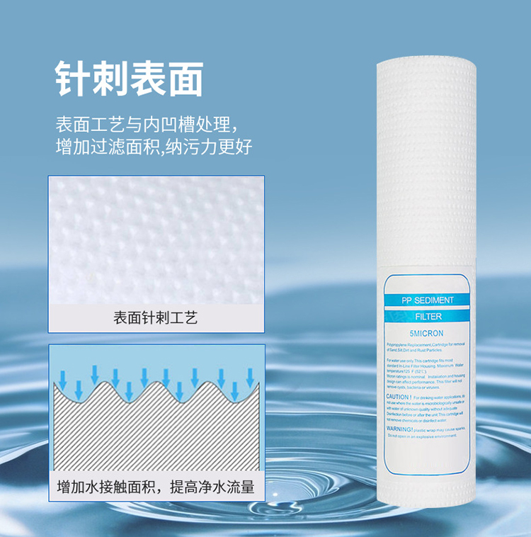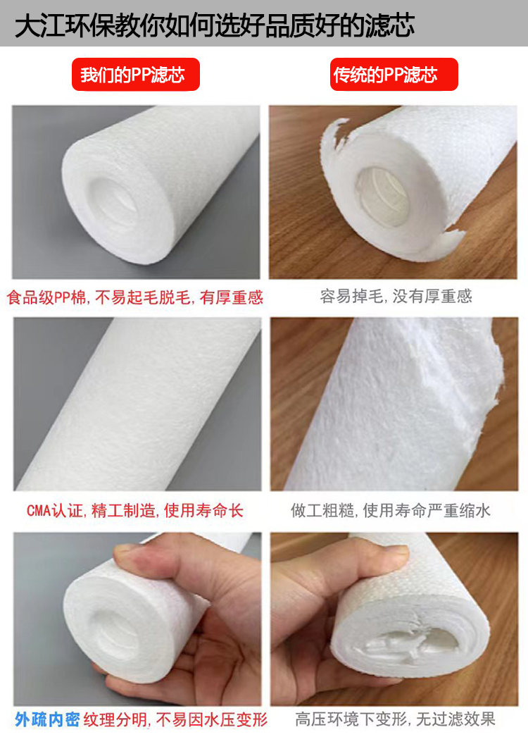 PP熔喷滤芯是采用食品级无毒无味的聚丙烯粒子,经过加热熔融、喷丝、牵引、接受成形而制成的管状滤芯。如果原料以聚丙烯为主。就可以称做PP熔喷滤芯。不仅在水净化大批量使用.还具有杰出的化学兼容性,适用于强酸、强碱及有机溶剂的过滤。纳污能力强,使用寿命长,成本低。