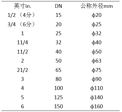 当设计中均采用公称直径DN表示管径时,应有公称直径DN与相应产品规格对照表。