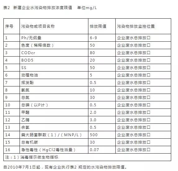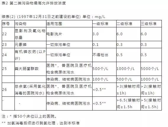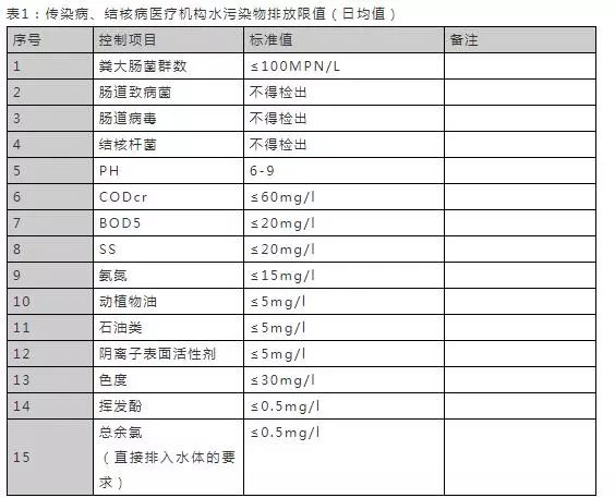 1、传染病和结核病医疗机构污水排放一律执行表1的规定