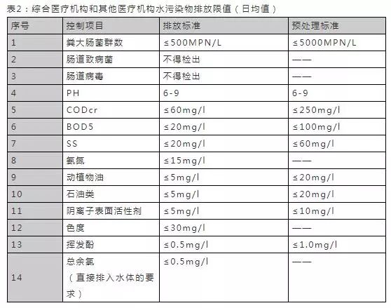 表2:综合医疗机构和其他医疗机构水污染物排放限值(日均值)