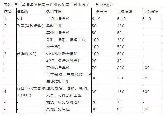 2. 排入GB 3838中Ⅳ、Ⅴ类水域和排入GB3097中三类海域的废水,执行二级标准。