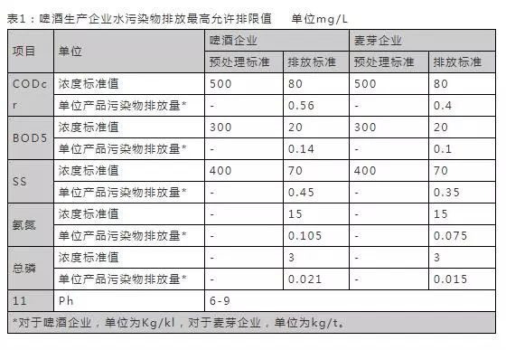 3.处理后排入自然水体的啤酒工业废水,执行表1排放标准的规定。
